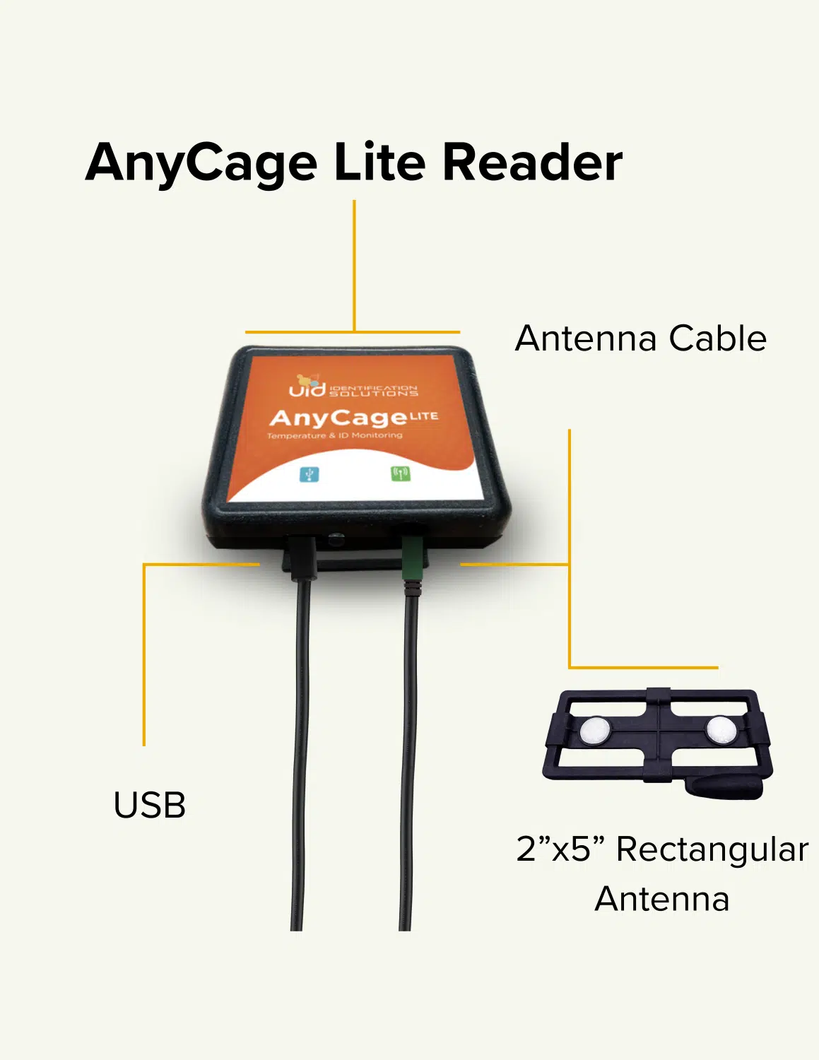 • Designed to work seamlessly with virtually any cage size or shape using magnetically attached antennas.
