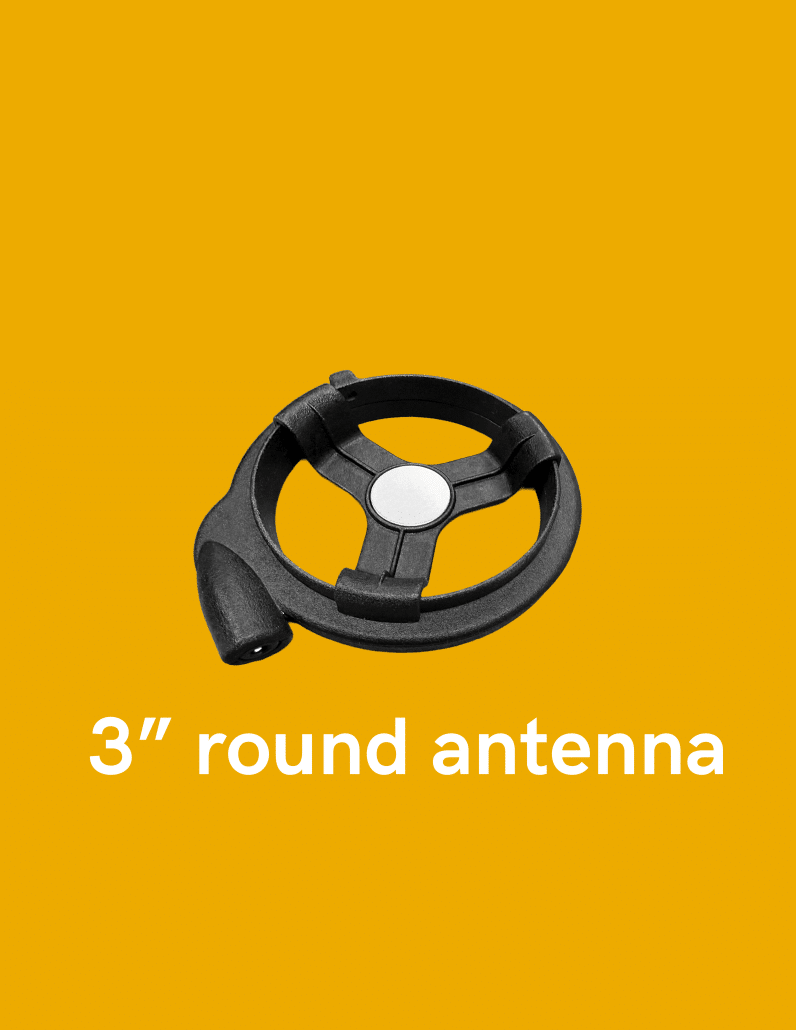 Antennas: two antenna size options: 3″ round antenna, 2″ x 3″ rectangular antenna